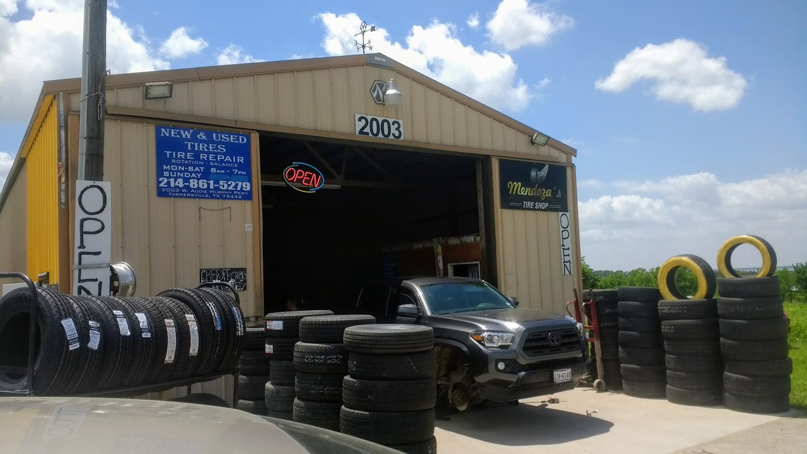 Mendoza's Tire Shop is a small business located in Farmersville, Texas. We offer in-store shopping with wheelchair accessible parking. Our amenities include a restroom for customer convenience. We accept credit and debit cards for payment. Contact us at +1 214-861-5279 or visit us at 2003 W Audie Murphy Pkwy, Farmersville, TX 75442. Check out our user reviews and photos online. Book an appointment during our business hours for all your tire needs.